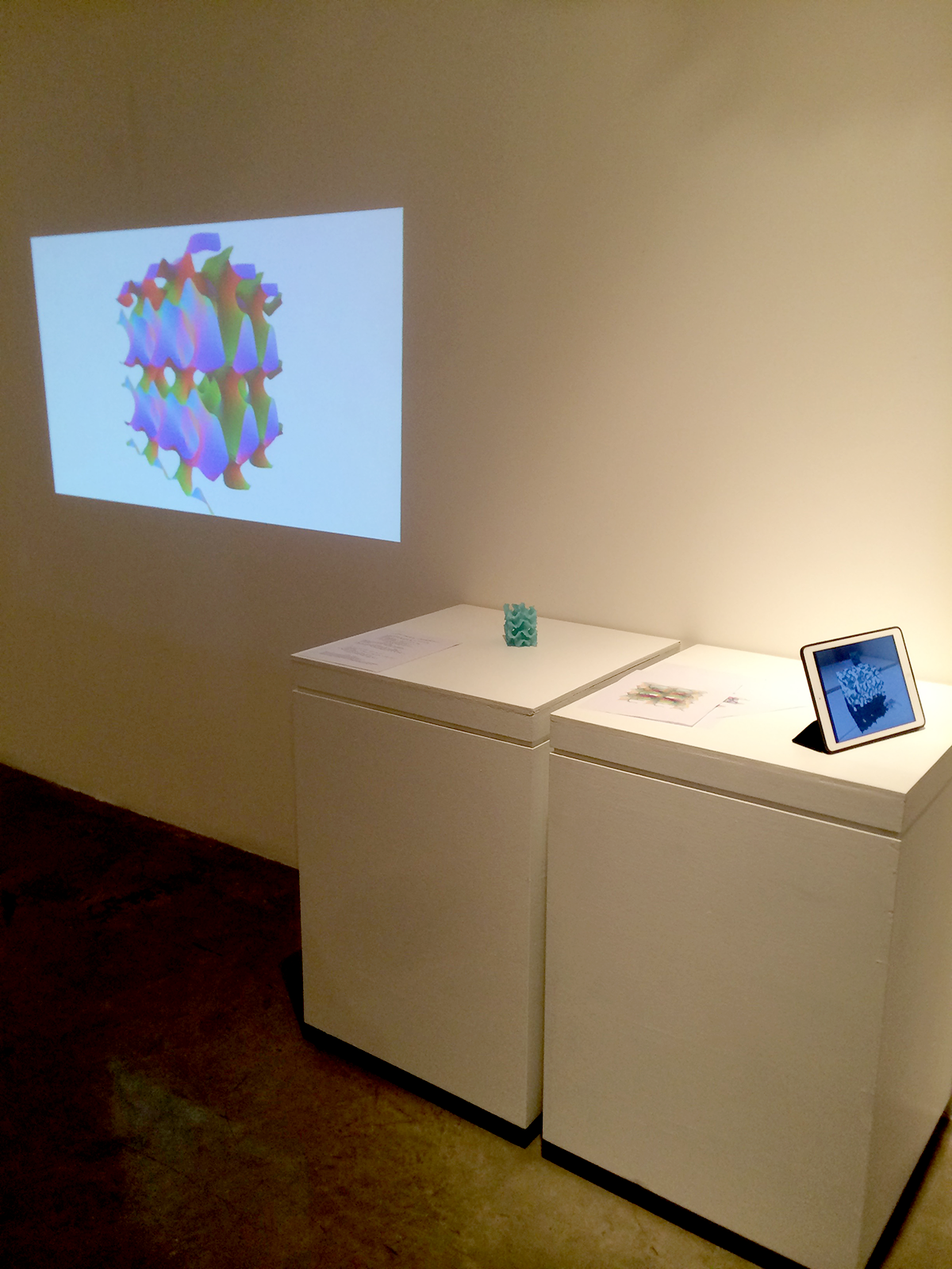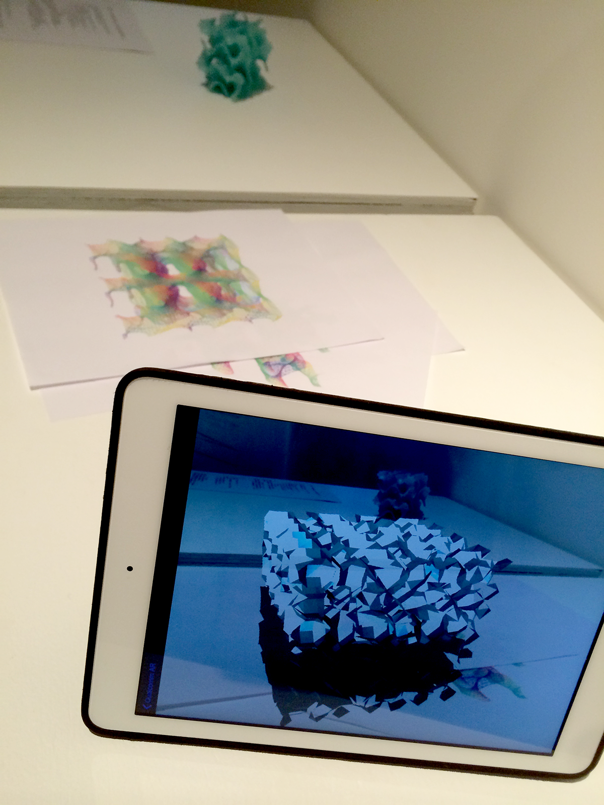 La pieza explora el concepto de realidad mixta: la fusión del mundo real y el virtual produciendo un nuevo entorno donde lo físico y lo digital se entremezclan, explorando la materialización de datos mas allá de las superficies tradicionales.