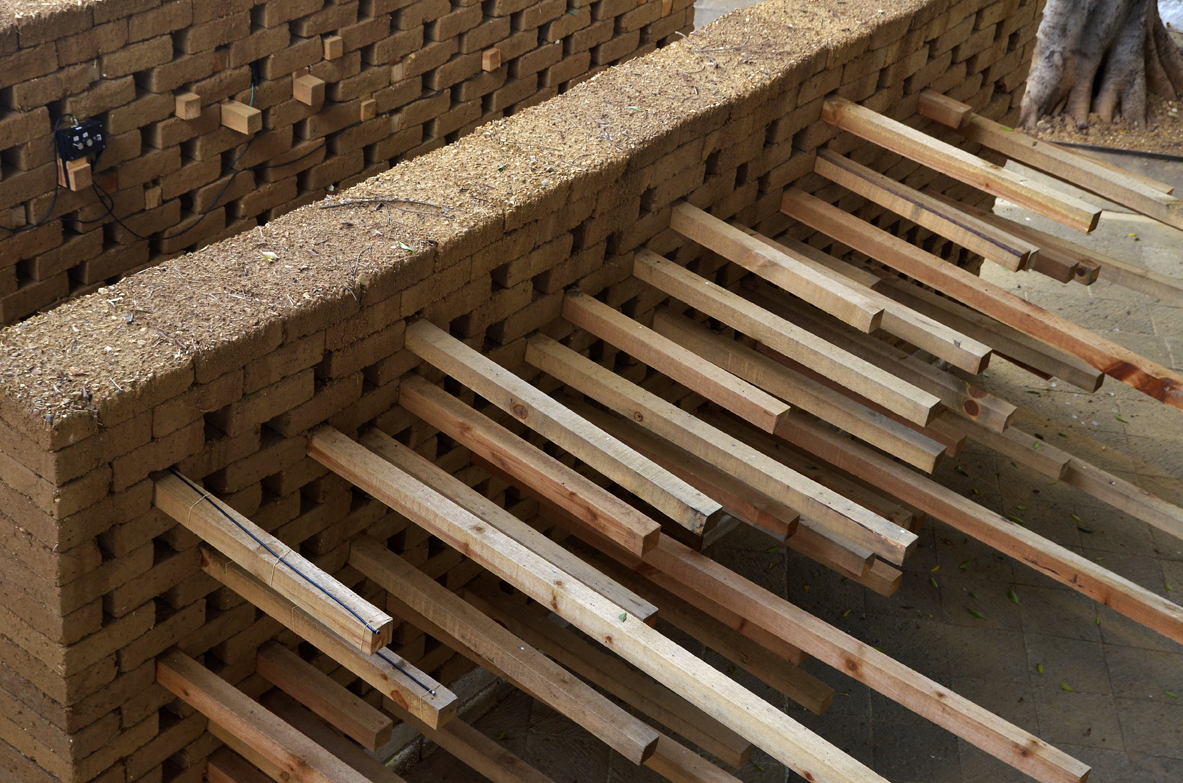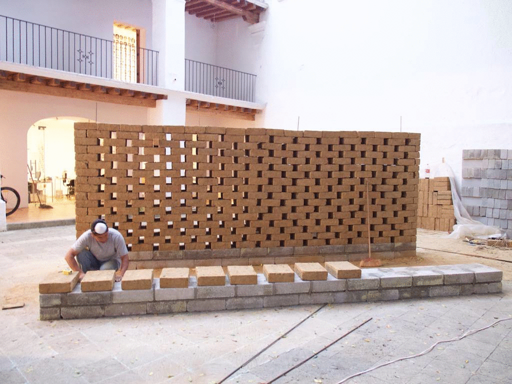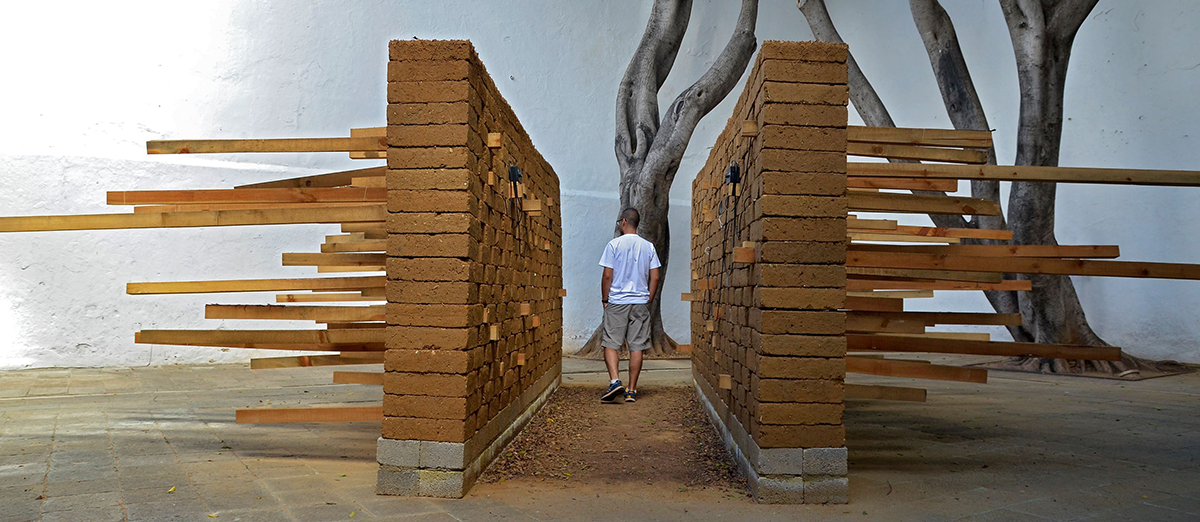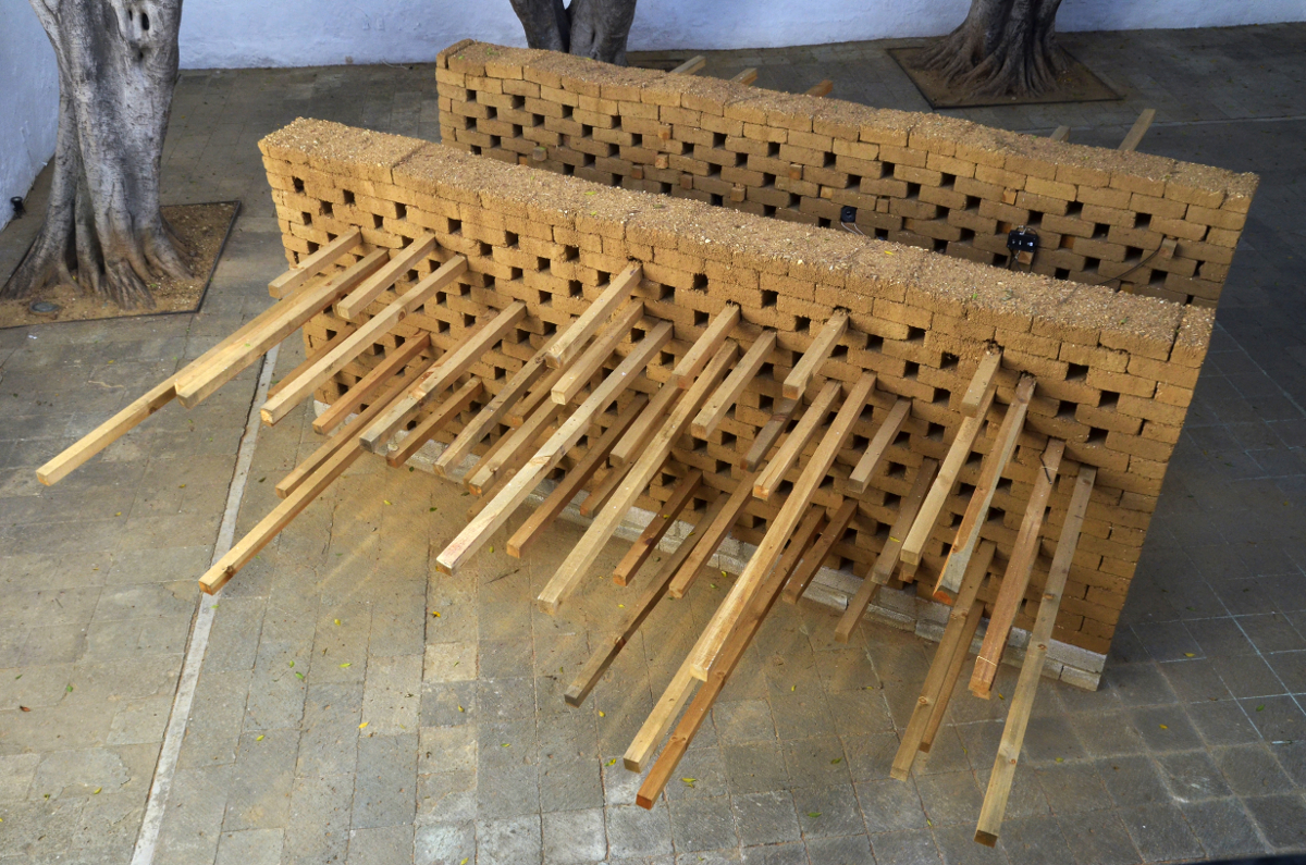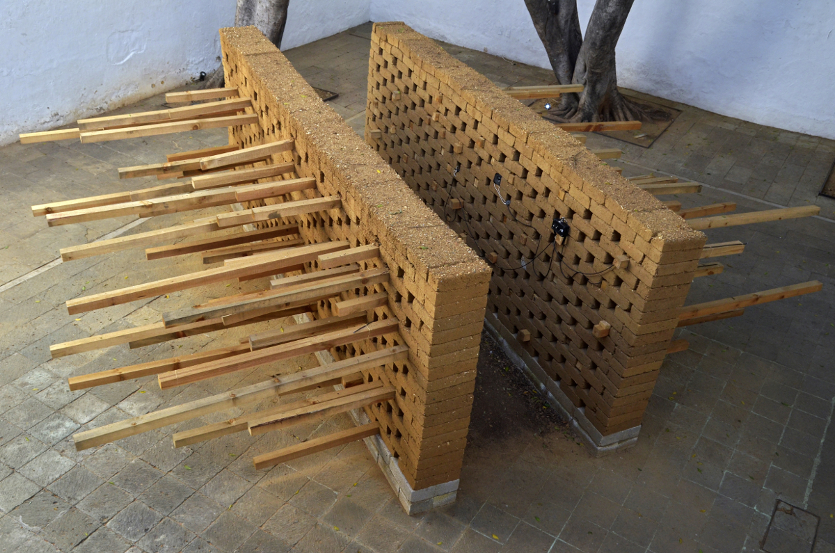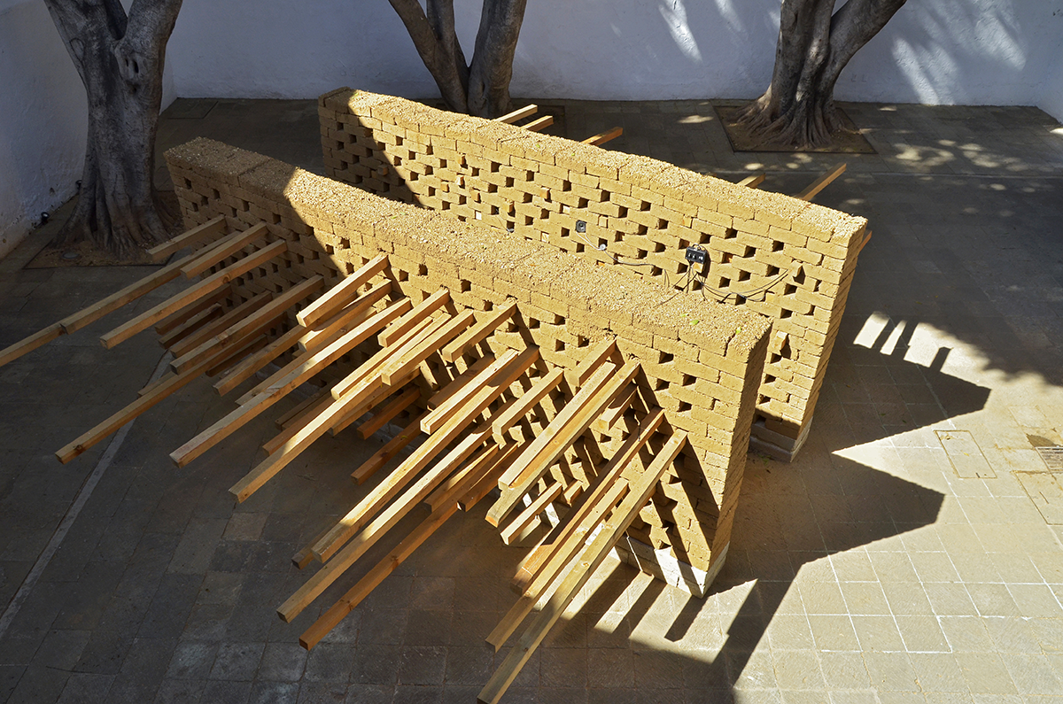 This is a Pavilion of primal materials and sound, divides a courtyard by means of two adobe walls creating a route and modifying the acoustic properties of the place.