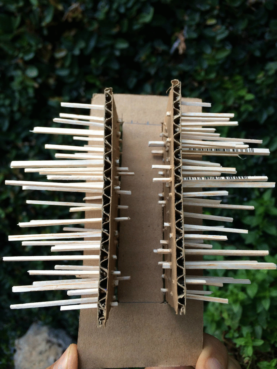 In its outer skin, the walls carry a series of spines with acoustic functions that create tension in space and work in turn giving balance, structuring weights and forces. In the interior, it houses a route for only one person, introspective and personal, the environmental acoustics are accentuated by means of a special system of microphones and loudspeakers, amplifying the environmental sound from the thorns to its center. A corridor of material nostalgia and acoustic sensitivity.